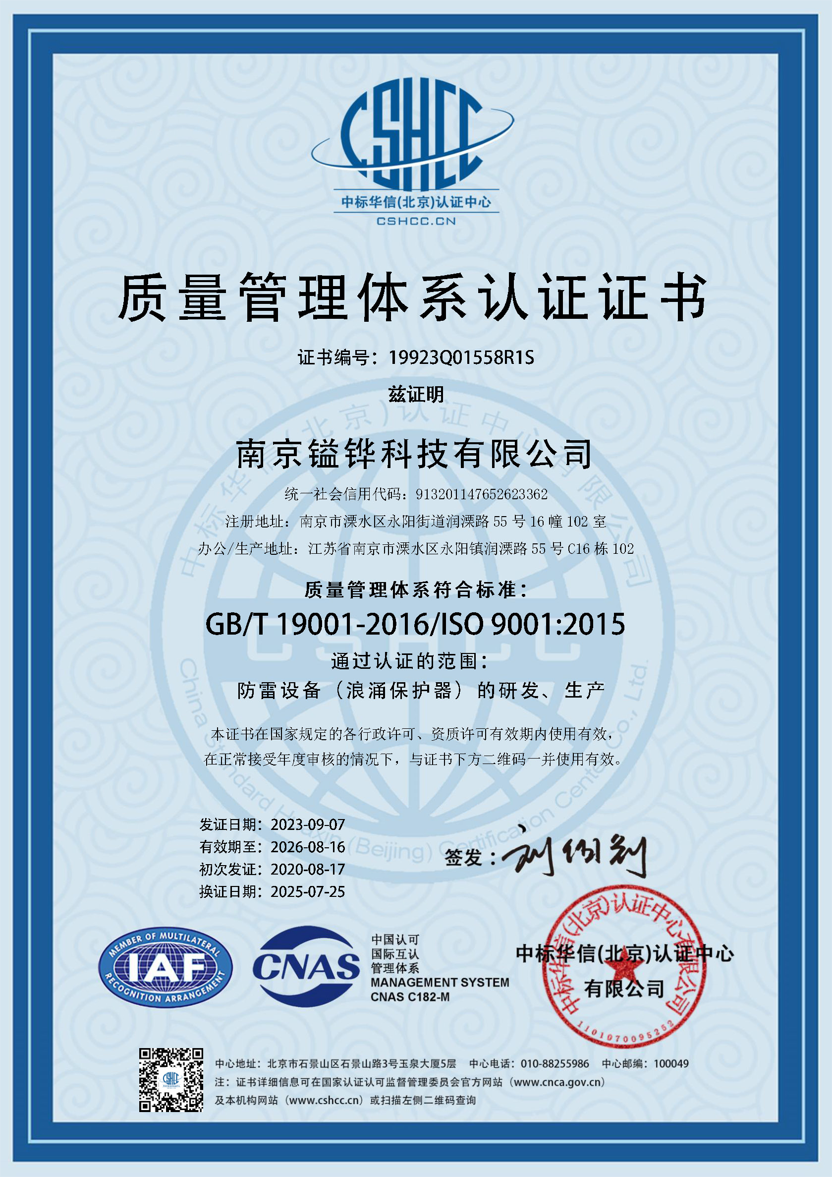 管理体系证书